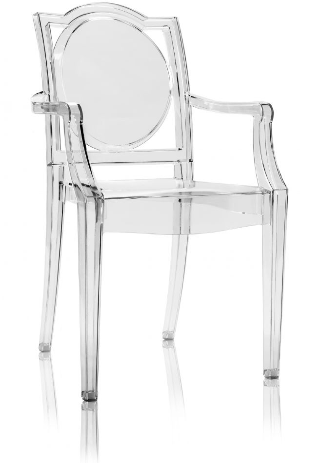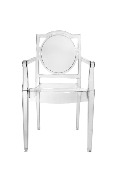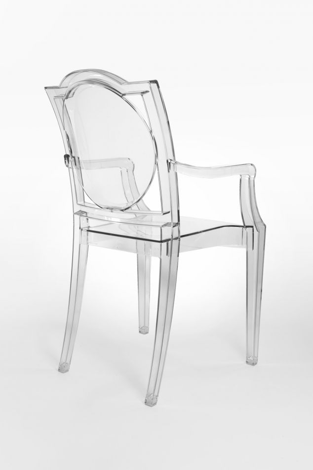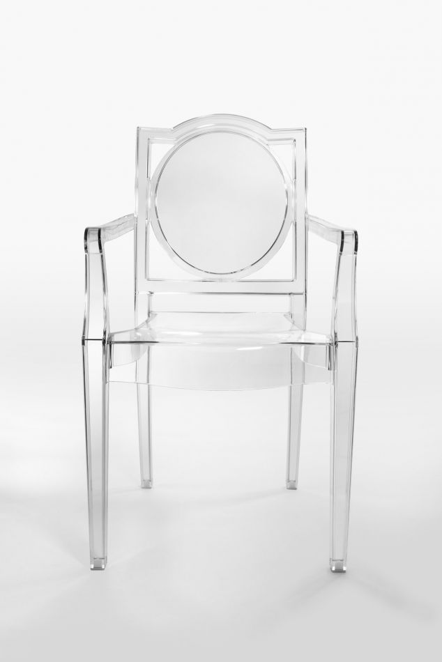 A comfortable armchair in transparent and colored polycarbonate in the Louis XV style. It is the quintessence of baroque revisited to dazzle, excite and captivate. Vittorio Emanuele Armchair is the most daring example in the world of injected polycarbonate in a single mold made in Italy.